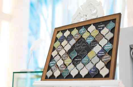 おふたりは人前式をご選択おふたりらしさがいっぱい詰まった人前式のスタートは新郎様の親御様からのジャケットセレモニー。受付でゲスト様に新郎新婦が用意したタイルを探して参加ゲスト全員で作る証明書と、新郎新婦様ご自身のお写真入りの証明書と2パターンご用意されました。ゲスト様がご自身のスマホでおふたりをしっかりご撮影されるシーンはとても素敵でした♡