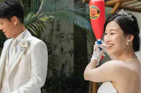「ガーデンでのブーケトスの後には、野球トスを行いました。新婦が打ったボールをキャッチした人にプレゼント。そのボールには、なんと!新郎のサイン入り! 誰得やねん!ってな(笑)」と楽しそうなお二人。 新婦様が大きく振りかぶって放たれたボールは、なんと!リングボーイを行ってくれたお子様がゲット♪ 大人も子供も楽しめる全員参加のイベントで大盛り上がり!