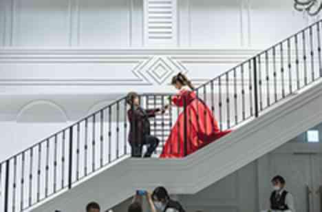 お色直し再入場の際は、ダーズンローズセレモニーを行い、12本の薔薇に込められている誓いをそれぞれゲストに当てはめ、新郎に渡してもらいました。 新婦は階段上から入場したので、気持ちは完全にお姫様で、片膝をついて12本の薔薇の贈る新郎は王子様のようでした。 ベタベタな演出ですが、ゲストの反応が良かったのと、こういう時しかできないロマンチックな演出なので、夫婦の大きな思い出となりました。