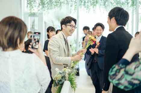 自分たちらしさが出せるよう、工夫しました★ 新郎は挙式入場時、歩くだけでは緊張してしまいそうだったので、ダーズンフラワーセレモニーを取り入れました♪花言葉にちなんだゲストの方にチャペルの入口で お花を渡していただきました。 新郎は集めたお花を花束にして、新婦へプレゼントし挙式時のブーケとして使用しました。緊張もほぐれてやって良かったなぁと思う、演出の一つです!!