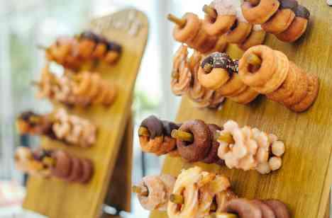 デザートビュフェの時間に自分たちの大好きなドーナツを出したいなぁと二人で考えており、プランナーさんやパティシエさんに相談して、ドーナツビュッフェコーナーを実現することが出来ました♪ ミニドーナツを沢山用意して、ゲストに楽しんでもらう事ができて大満足です!! ちなみにドーナツウォールは二人で手作りしました(笑) 我ながら上手く出来たと思います(笑)