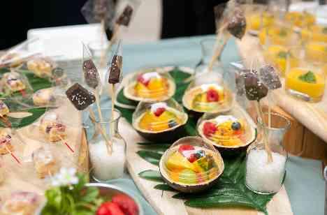 新婦様お母様が闘病中で、挙式と披露宴を2部制に。新婦様より「色々無理を言ったにもかかわらず、面倒くさい顔1つせず全て受け入れてくださり、さらには温かい言葉で励ましてくださって、コロナ禍でも希望を失わず準備に取り組むことが出来ました」 その中でもデザートビュッフェのココナッツの殻はどうしてもご準備出来ず、チョコでココナッツの殻に見立てた器を作製!新郎新婦様には「感動」とのお言葉を❤