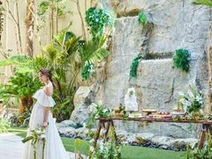 圧巻の美しさ、高さ7mの大きな滝が流れるガーデン。パーティ会場の外に広がるプライベートガーデンでは大きな滝に癒されて心が和むひとときを。ゲストと一緒にウェルカムパーティやデザートビュッフェなど自由なスタイルでリゾート感たっぷりのウェディングを楽しもう