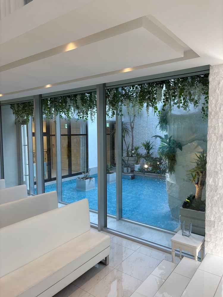 思いの外、チャペルが水に浮かんでいなかった。バージンロードの真ん中まであるくと左右に水が見えるが、チャペルのドアを開けた時は白基調のチャペルだと感じる。宣伝写真とは少し違う。