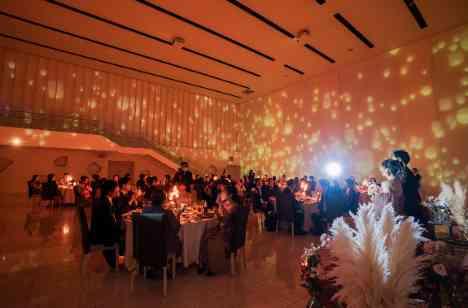 新郎新婦が特にこだわったの演出が再入場です!通常の入場と一味違うシルエット入場を行いました。そして入場後には360度のプロジェクションマッピングでゲストを魅了した後、さらにサプライズで一斉点火のキャンドルイリュージョンを行いました!ゲストの反応は最大級に盛り上がりました。ご披露宴が終わった後もゲストから大好評だったと伺い改めてこだわったお2人のご結婚式が実現できてよかったと思っております!