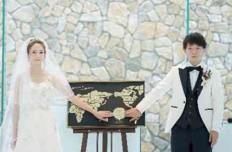 二人だけのセレモニーだけではなく人前式ならではのゲスト参加型で結婚証明書を作成する世界地図パズルの結婚証明書を用意しました ゲストの皆様のお名前が彫刻されたピースで証明書が完成した瞬間は感動の祝福のシーンとなりました!