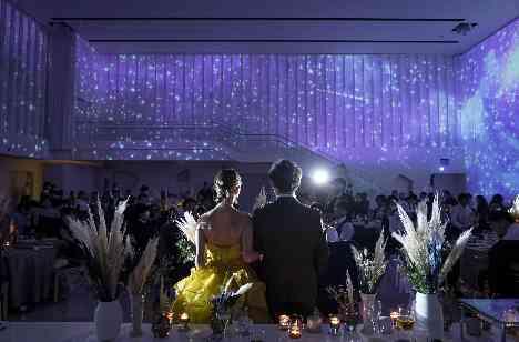 アンジェならではプロジェクションマッピングはゲストからの受けもよく、お二人の会場見学のときにかなり驚かれたそうです そして、新郎新婦様はお酒が大好き! ゲストの皆様もお酒好きが多かったそうですが、ドリンクメニューがかなり豊富で大満足でした!
