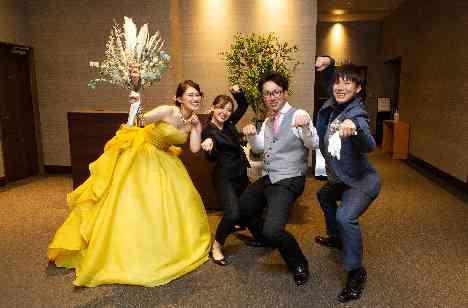 ファーストバイトはJさんはもちろんYさんも大きなケーキをがぶり!と召し上がられました!また当日お越し下さったゲストの皆様によりたくさん楽しんでいただけるよう、ドレス色当てクイズなどゲスト参加型の演出を考えたそう!