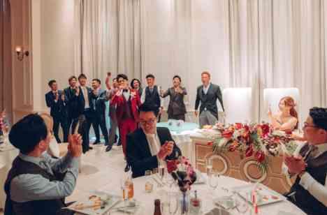 サプライズでウルフルズの「バンザイ」がスタート! 次々に新郎様のご友人様たちが歌い上げていきます ここで満を持して新郎お父様もマイクを取ります 大盛り上がりの中 ラストは皆さんの想いを受け取った新郎様の大熱唱! 大団円で結びとなりました 新婦様が「何か歌ってほしいと思っていた!」 と大喜びでいらっしゃったのが印象的です