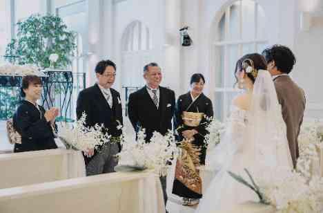結婚式当日はご両家の親御さまとのファミリーミートを行いました。 親御さまもおふたりの入場までどきどきしながら、チャペルでお過ごしのご様子でしたが 「お父さん、お母さん」の声掛けで振り返り、晴れ姿を目にしたあとはこの笑顔☺ 挙式本番前はファミリーミートや挙式のリハーサルを行い、ご家族さまとごゆっくりお過ごしいただきました。