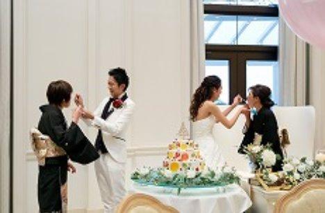 お母様へのサプライズ演出! ケーキ入刀のあとにはおふたりからお母様にラストバイトのセレモニーを行いました。照れながらも嬉しそうなお姿にご家族の皆様との思い出に残るシーンとなりました。 ケーキもおふたりのこだわりポイント!