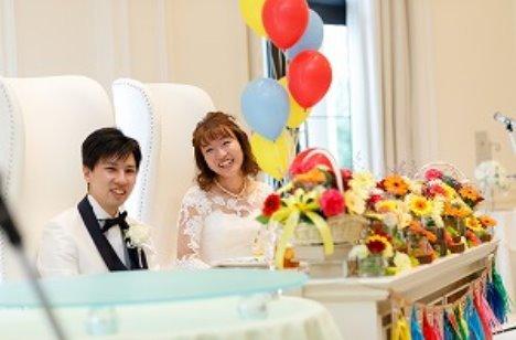 いつも笑顔の新婦様とその姿を優しく見守る新郎様。 とにかく結婚式を楽しい雰囲気で!とのイメージをお持ちでした。 演出だけではなく、ゲストの皆様がその空間にいらっしゃるだけで 笑顔に・元気になるような明るいコーディネートをご相談させて頂きました。