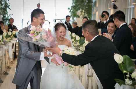 人前式のあたたかみがある結婚式も魅力的ではありますが、披露宴とメリハリをつける為にも、シンプルなキリスト教式でした。しかしお二人のお人柄や、ゲスト様のサプライズ花束のお渡しによって感動の涙や笑顔があふれる素敵なあたたかい結婚式となりました。