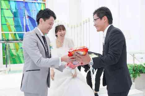 「お越しいただいたゲストの方も参加できるような結婚式に」ということで新婦様のブーケトスの後 新郎様もプレゼントトスを行いました。これには男性ゲストも大はしゃぎ♪しっかりとプレゼントをゲットしていただきました。