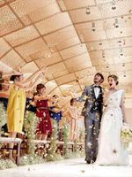 永遠の愛を誓った後は全天候型の大階段でアフターセレモニーを。1番人気は、やはり何と言っても「フラワーシャワー」。花びらが鮮やかに舞い、笑顔で歩みを進める花嫁の姿はまるで映画のワンシーンそのもの。ゲストからの「おめでとう!」の声に笑顔で応えて。