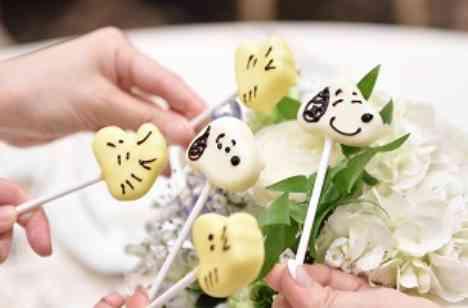 みんな大好きのあの大人気キャラクターのチョコロリポップ…♡ 会場スタッフ全員が「お二人といえば、ワンちゃんと黄色い鳥のこのキャラクター!」と声をそろえるほど大好きなキャラクターを再現! 専属パティシエお手製のチョコロリポップは、ゲストの皆さまから大好評♪ 実は一つ一つ違った表情をしているんです…かわいい!♡