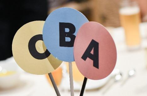 インフィニート名古屋で大人気の演出、格付けクイズ!様々なスタイルでご準備が可能なのですが、おふたりが選んだのは①3種類の緑茶の中から岐阜県産の有名な緑茶を当てる飲み比べ②2種類の鶏肉の中から名古屋コーチンのからあげを当てる食べ比べ③3種類の和紙の中から岐阜県の有名な和紙を当てるという3種類の格付け!おふたりの出身である岐阜県と絡めたオリジナルの格付けクイズで、ゲスト皆様に楽しんでいただきました!