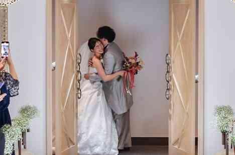 おふたりが選んだ挙式スタイルは、ゲストの皆様に誓いを立てる人前式。オリジナルのお式にすることが出来るので、おふたりらしさを取り入れる方が多い挙式スタイルです!こちらのおふたりは挙式の退場時、扉が閉まる前に行ったクロージングハグ♪挙式の結びに取り入れたことでゲストからの温かい歓声の中でお式が結ぶという心温まる挙式になりました^^