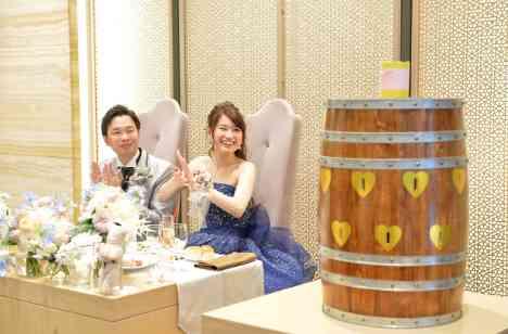 披露宴ではゲスト参加型の演出として、懐かしのアイテム【黒ひげ樽】を使用しました。指名されたゲストが順番に剣を樽に差し、黒ひげが飛び出してきた人がアウト…というドキドキハラハラな演出に大盛り上がり。ゲストの皆様のリアクションも◎でした。