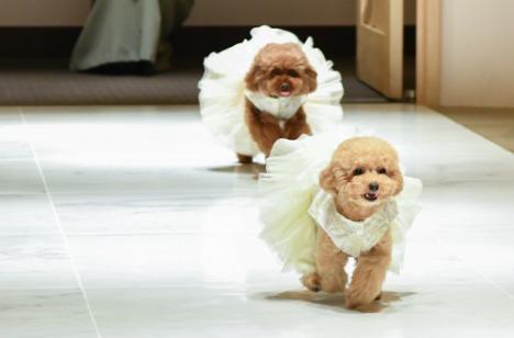 おふたりの指輪を祭壇まで運んでくれるのは…とってもキュートなリングドッグ!おふたりの飼ってるトイプードルと、新婦のお姉様が飼われているトイプードルの二匹が一生懸命運んでくれました🐾サプライズ感あふれる演出にゲストの皆様も大盛り上がり!リングドッグは挙式後のアフターセレモニーまで皆様と同じ空間にいたため、アイドルのような歓声を浴びていました^^