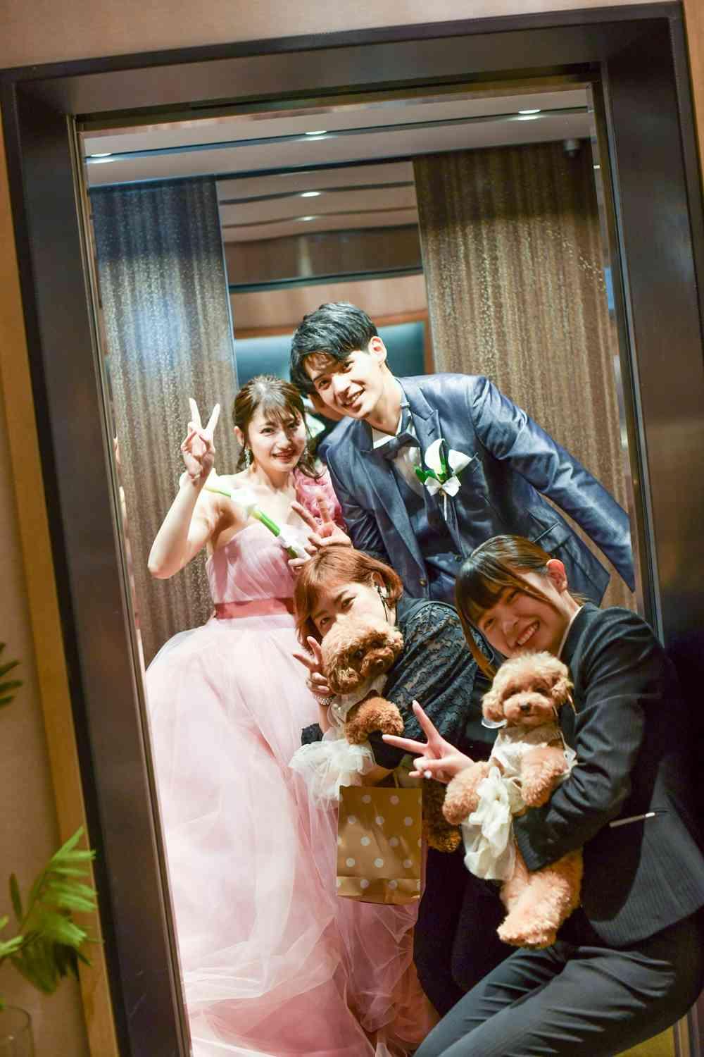 チャペルから披露宴会場へと続く大階段では、憧れのフラワーシャワーやブーケトスなどゲストと一緒に楽しめる。