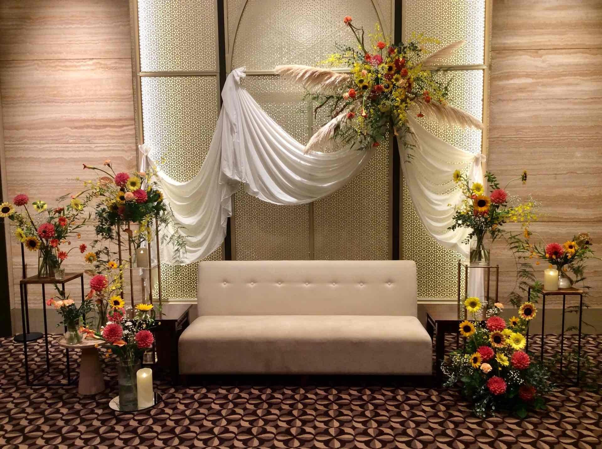 開放感溢れる全天候型のテラスは扉を開け放つととパーティ会場とひと続きになる。光が差し込むテラスからの入場やケーキ入刀、デザートビュッフェなど、様々な演出でゲストと一緒に楽しいひとときを過ごして。