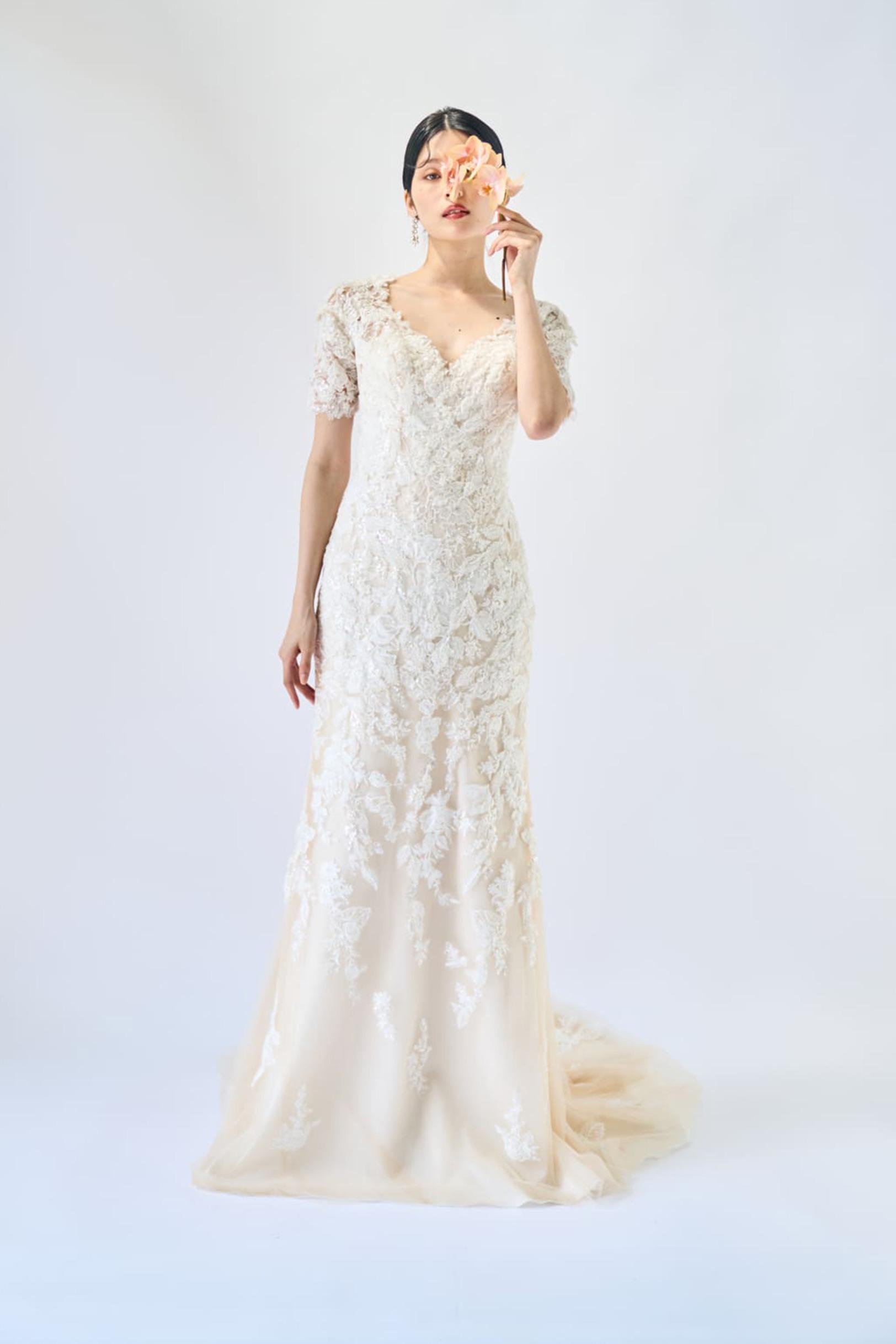 最上階に設けられるチャペルは、まるでレースに包まれたかのようなドーム型で、照明効果を活かした幻想的な空間。1件目来館の方に「ドレス&タキシード20万円優待」(カップルでAM来館限定)