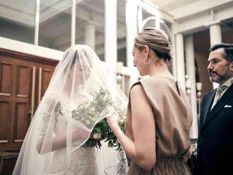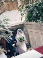 歴史的保存箇所である大理石階段のバージンロードを歩む入場シーンは今までになくゲストの印象に残る幻想的な時間に。感謝の想いと喜びをかみしめながら新郎が待つ祭壇へ。