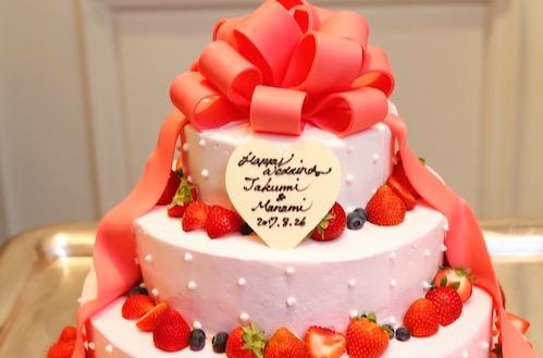 オリジナリティーにこだわりケーキもお二人だけのデザインを作られました。 リボンやグラデーションにこだわり披露宴に華を添えてくれました。