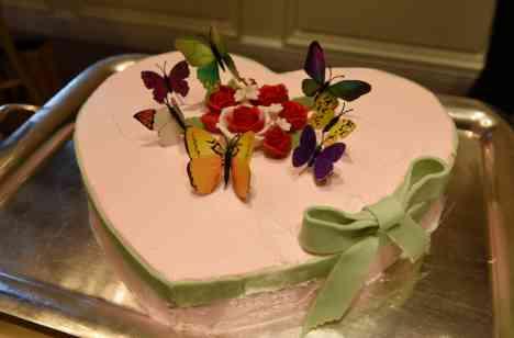とことんこだわって頂いたウェディングケーキ! ハート型でピンクに可愛らしく。リボンもあしらった中に、蝶々が飛んでいます。 会場装飾と合わせてお花畑の様に! ケーキ入刀や、ファーストバイトも大盛り上がりでした。 インスタ映えも間違いなし!