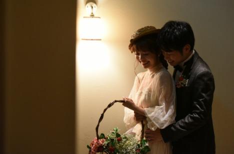 マリーアントワネットのような世界観を。 明さんのお見送り後にお二人だけで行う写真撮影。 ホットしたのもあってかおふたりらしい素敵な笑顔に。 当館では、たくさんのフォトスポットがありますので、おふたりも大満足でした。