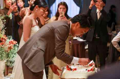 披露宴会場はおふたりがイメージする世界観を、フローリストがお花や小物で演出。 オープニングムービーを上映後、満面の笑みでご入場されたおふたり。 お世話になっている上司の方に乾杯のご発声をいただき、楽しい歓談のお時間がスタートしました。 おふたりを囲んで和やかなお時間が続く中、登場したのはおふたりの結婚証明書をイメージしたブック型ケーキ。 おふたりがチョコペンで名前を入れて完成です。