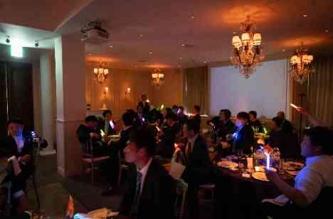 新婦様は中座のエスコート役にお姉様をご指名。 喜びの笑顔が溢れる素敵なワンシーンとなりました。 続いて新郎様がエスコート役にご指名されたのは、共に育ってきた弟様、新郎様とお名前が同じ従兄様、そして新郎新婦のお子様。 男4人組列車スタイルでのご中座も大変盛り上がりました。 お色直し後のカラーを当てる色当てクイズもペンライトで実施。 ゲストもワクワクしながら予想されていました。