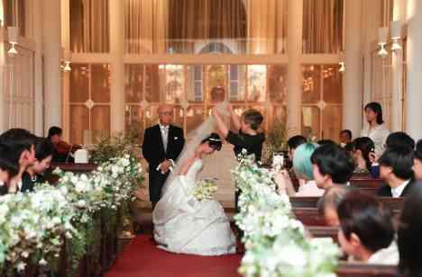 お支度が整いましたら、いよいよ挙式スタート。 ご入場される際それぞれのお母様より、ジャケットセレモニー・ベールダウンセレモニーを行っていただきました。 どちらも最後のお支度をお手伝いいただき、バージンロードへと送り出していただく、親御様とおふたりのお気持ちに寄り添った人気の演出です。 「音の教会」の名に相応しいオルゴールセレモニーが、大切な挙式に花を添えました。