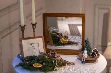 クリスマス間近の12月23日、おふたりのお式が執り行われました。 おふたりの似顔絵イラストに加え、ツリーや松ぼっくりなど、クリスマス色に飾られた館内。 ゲストの皆様には、Wedding Flower Vaseのお手伝いもしていただき、この後の挙式にて完成したものをお披露目する予定です。 ムードたっぷりの文化財×これから始まる1日に、おふたりもゲストの皆様も胸が高鳴ります。
