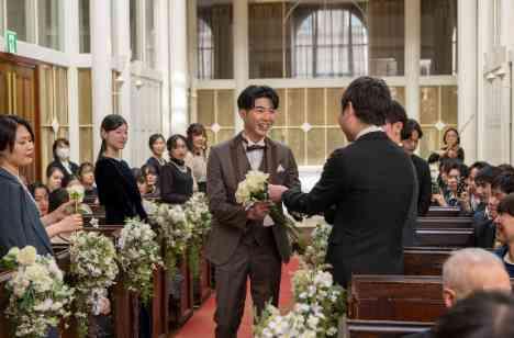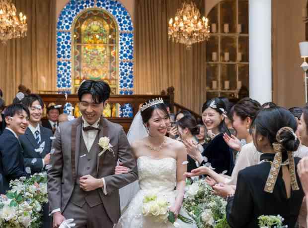ファーストミートのあとは、チャペルでのお写真撮影を行い、いよいよ挙式スタート。 おふたりは人前式にて「ダーズンローズセレモニー」を行いました。 「ダーズンローズセレモニー」とは、新郎様がゲストから受け取った12本のバラを束ね、愛の言葉とともに新婦様に渡す演出です。 LoAの雰囲気ともマッチし、おふたりと皆様が一体となる素敵なお式となりました。