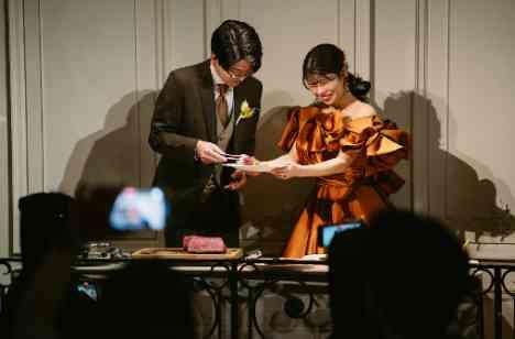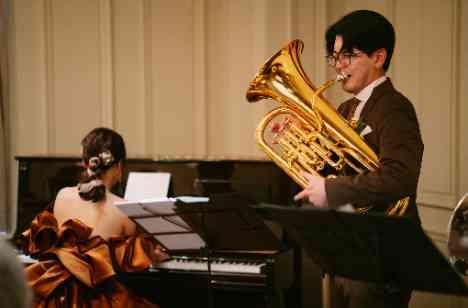 新婦ご友人によるサプライズダンスのご余興。 新婦様が好きな曲に合わせて歌って踊り、会場を盛り上げてくださいました。 おふたりも大喜びでサプライズ大成功です。 新郎新婦とおふたりの恩師によるユーフォニアム&ピアノの演奏をご披露いただきました。 この日のためにたくさん練習をしてきた新郎新婦。 本番でも完璧な演奏でゲストもうっとりする感動的な音色でした。