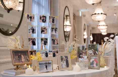 夏が大好きな新婦様、ご入籍も毎年お祝いできる夏の祝日である8月11日を選ばれました。 ご結婚式はお好きなイエローをテーマカラーにしたサマーウェディングを執り行いました。 柔らかな緑に日差しが差し込む心地よい日に、ふたりの結婚式は行われました。 ゲストをお迎えする白亜の待合室『Rose(ローズ)』に飾られたのは、おふたりの前撮りお写真や手作りのフォトパネル。