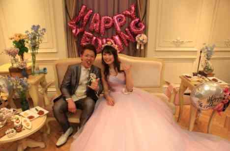 お二人こだわりのソファメインです。 ゲストの皆さまとより、お写真の撮りやすい雰囲気で。 且つ、おふたりらしいピンクやお持込みのバルーンをとりいれコーディネートで完成です。 たくさん素敵な写真が取れました。