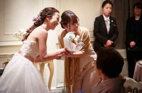 ブーケトスをずっと悩まれていたご新婦様。大切なご友人様だからこそ幸せになって欲しい!ブーケトスではなく披露宴の中で直接お渡しすることにいたしました。ご友人様もとっても喜んでいただきご新婦様からの想いがしっかりと感じていただけたと思います。