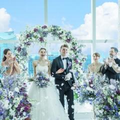 【絶景チャペル*模擬挙式体験】地上215mで東京タワーや皇居を一望!ガラス一面から自然光がたっぷりの差し込む天空チャペルで感動の入場体験を。幻想的な夜景が広がるナイトウエディングもお選びいただけます。