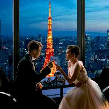 美食に特化した、アーバンビューの美空間東京の空の上で、ライブ感ある贅沢なレストランウエディングを