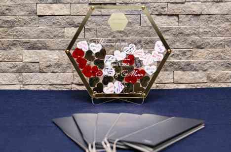 お二人が結婚証明書に選んだ「ウェディングドロップス」は、ハートの形をしたチップをゲスト一人一人に配り、名前やメッセージを書いてもらい、専用ボードに入れ、ゲストに結婚の承認になっていただく参加型の演出。ドロップスタイルなので、周りを気にすることなく、自由にゆっくり想いを込めてメッセージを書くことが出来るのも嬉しいですね!