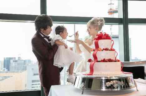 まるでプレゼントのようにリボンが飾られた華やかなウェディングケーキ!写真映えのするこだわりのケーキにゲストもお写真をたくさん撮られておりました。新婦様からご新郎様へのスプーンは少し大きめで、鼻にクリームを付けながら一生懸命ほおばっている微笑ましいお姿が見られました。その後はリングガールを頑張ったお子様へもケーキをプレゼント。美味しいケーキに思わず笑顔が♡