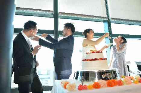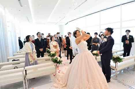 涙あり笑いありのアットホームな挙式でした。新郎様の「3・2・1」の掛け声に合わせてのブーケトスセレモニーは、皆様「ワクワク・ドキドキ」そんな高揚感に包まれました。 ブーケキャッチしたゲストの方と記念にお写真もお撮りしました。