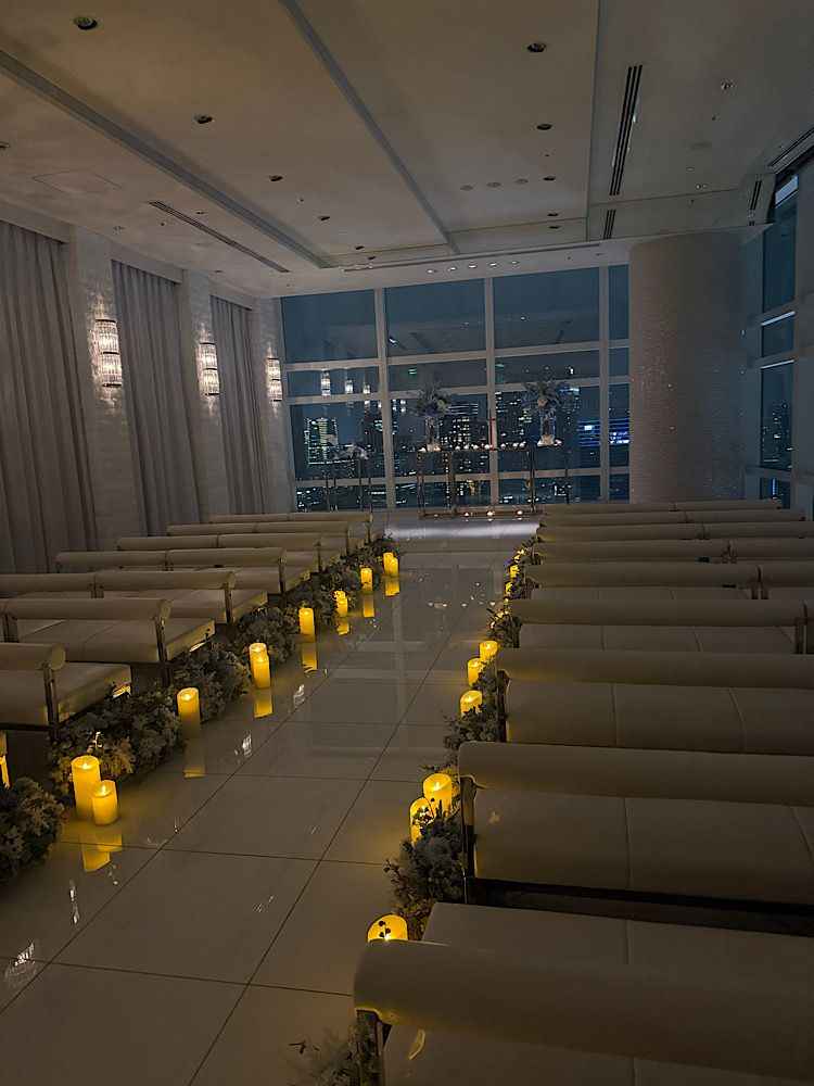 天井が高くて、開放感があって気持ちが良かった。シンプルでありながら洗練された空気感があった。披露宴会場はおしゃれな空気があった。