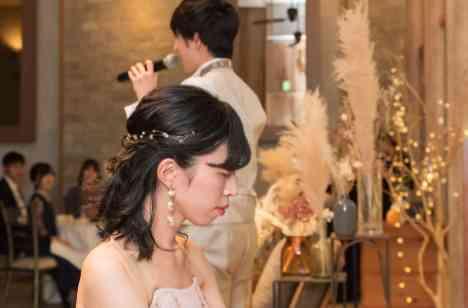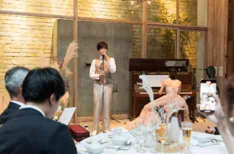 曲名「kaede」作曲はご新婦様のご友人様、作詞・編曲は新郎新婦のおふたりで作成しているオリジナル曲となっています ゲスト皆様へ向けたメッセージが、各グループに向けたフレーズを綴っている歌詞になっていて、どのフレーズがどのグループの方に向けた内容なのかを想像しながら聴いていただくお時間でした おふたりの音色と歌声が響きわたり、ゲストの皆様の心に届いたとても穏やかな時間となりました