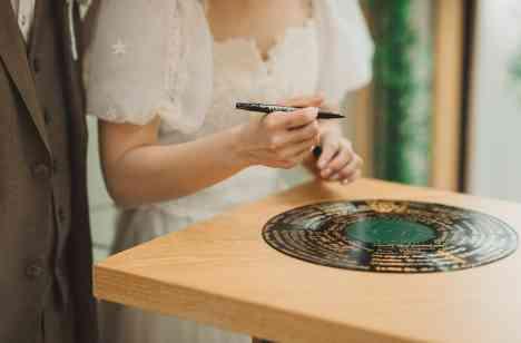 バンドやフェスが大好きなおふたりがご用意された結婚証明書は「レコード」。 レコードの円盤にゲスト1人1人にローマ字でご署名いただきました。ゲストの皆様のお名前が刻まれることで、みんなで創り上げた結婚式の証となりました。 この日にだけしか創り上げられることのできない、おふたりだけの結婚証明書です。