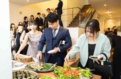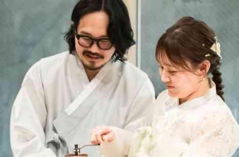 韓国の結婚式は短時間であっという間。だから日本の結婚式の演出も盛り込みながら実現させたいという想いをお聞かせいただきました。挙式後のウェルカムパーティーでは韓国ビュッフェを行い、ドリンクと合わせてお話を楽しんで。披露宴ではケーキセレモニーや新郎新婦クイズで盛り上がるイベントも♡ おふたりの好きなコーヒーを淹れる演出のあとは、新婦おば様が経営している喫茶店のコーヒーでゲストの皆様をおもてなし。
