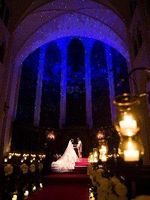 全面に煌めくステンドグラスが一瞬にして星空にかわる幻想的な演出。おふたりとゲストの記憶に残る特別演出。こんな演出見たことないと大好評。 祝福のフェザーシャワーやスターシャワーなどここでしかできないオリジナル演出は必見!!!